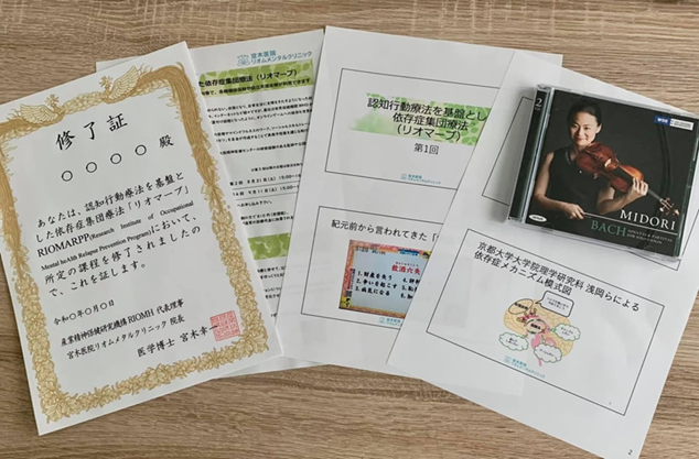 このプログラムは個別対応が基本(健康保険が使える、医師と1対1の保険診療)となるため、グループセッションの参加が苦手だったり気後れしてしまう方でも安心して学んでいただくことができ、保険診療の枠内で行われるため自己負担も抑えられます。ご紹介した専門機関でのCRAプログラムと組み合わせることで、より一層効果的に再発予防を図ることも可能です。ぜひ、実際の診療で用いられる依存症再発予防プログラム『リオマープ』のスライド資料を手に取りながら、日常生活の中で小さな成功体験を積み重ね、再発リスクを着実に低減してご自身の自信と周囲の信頼を回復させていきましょう(本プログラムでは、大阪出身の世界的ヴァイオリニストである五嶋みどりさんのNPO「ミュージック・シェアリング」に協力いただいています)。